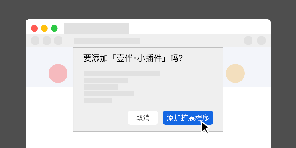 点击「一键安装」后,请稍等数秒,浏览器会自动弹出添加提示,「添加扩展程序」安装成功